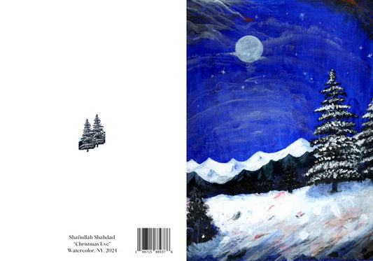 "Christmas Eve" Holiday Greeting Card Blue Watercolor